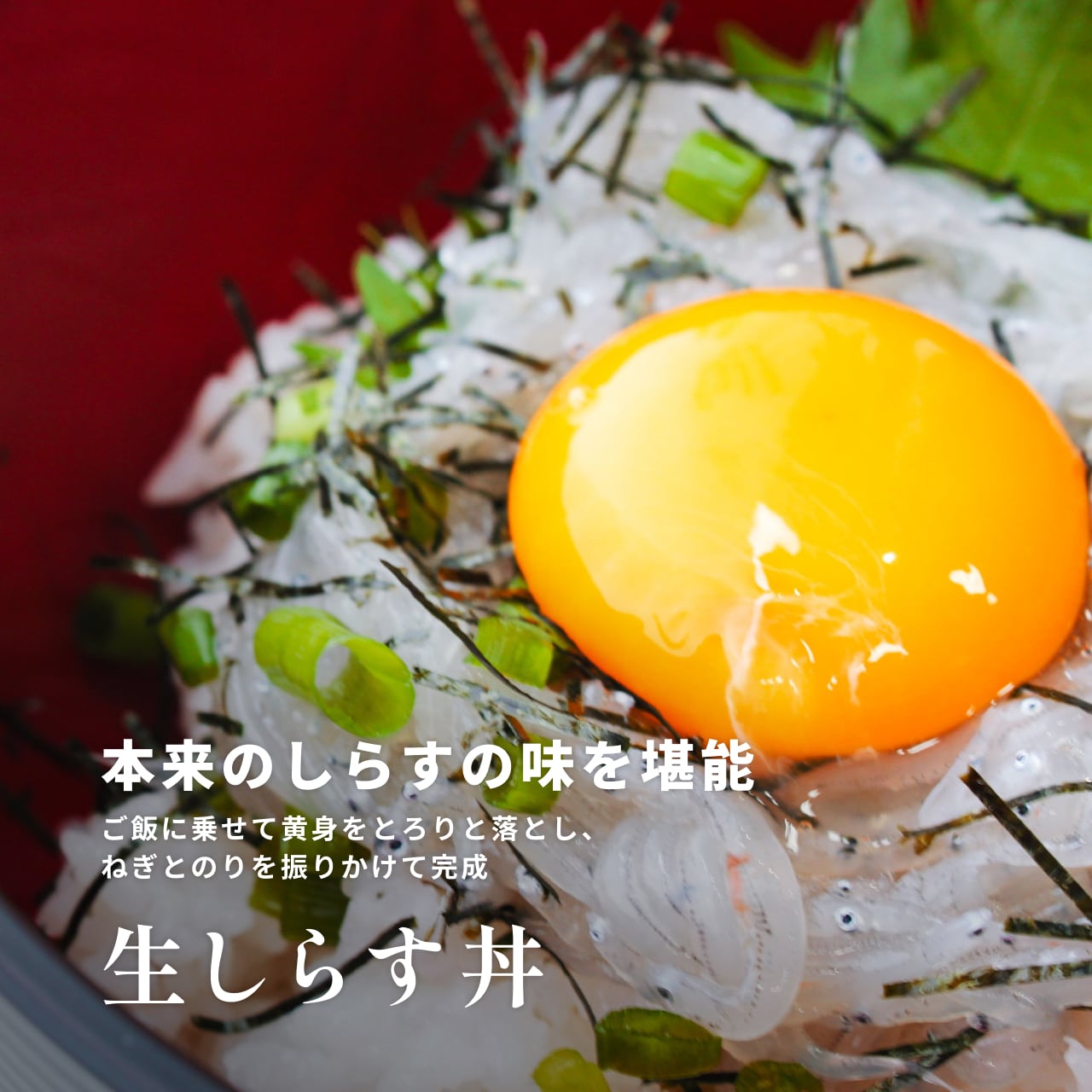 最高の口当たり・のどごしと風味をもった、鮮度抜群の生しらす丼をぜひご家庭でお楽しみください。