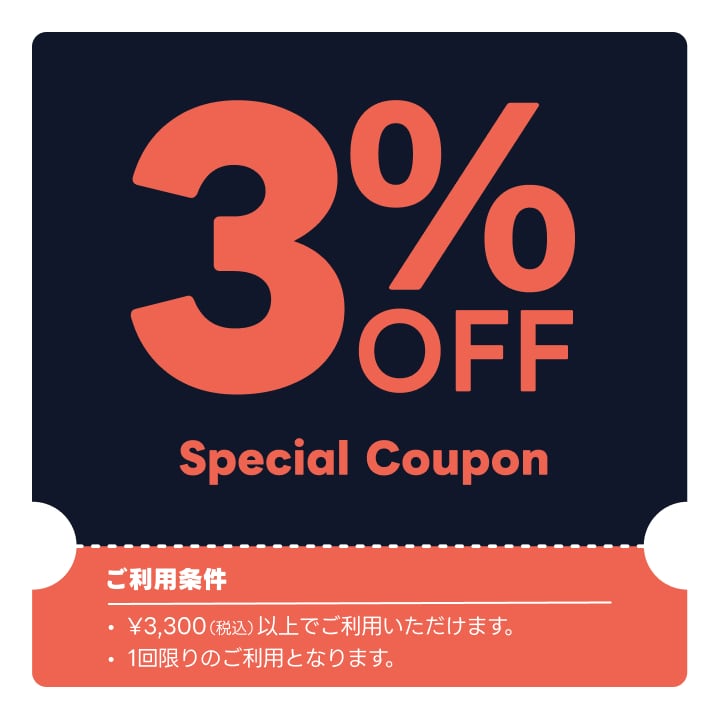 申請時のお買い物ではクーポンのご利用はできませんが、次回のお買い物の際に受け取ったクーポンコードをご利用ください。